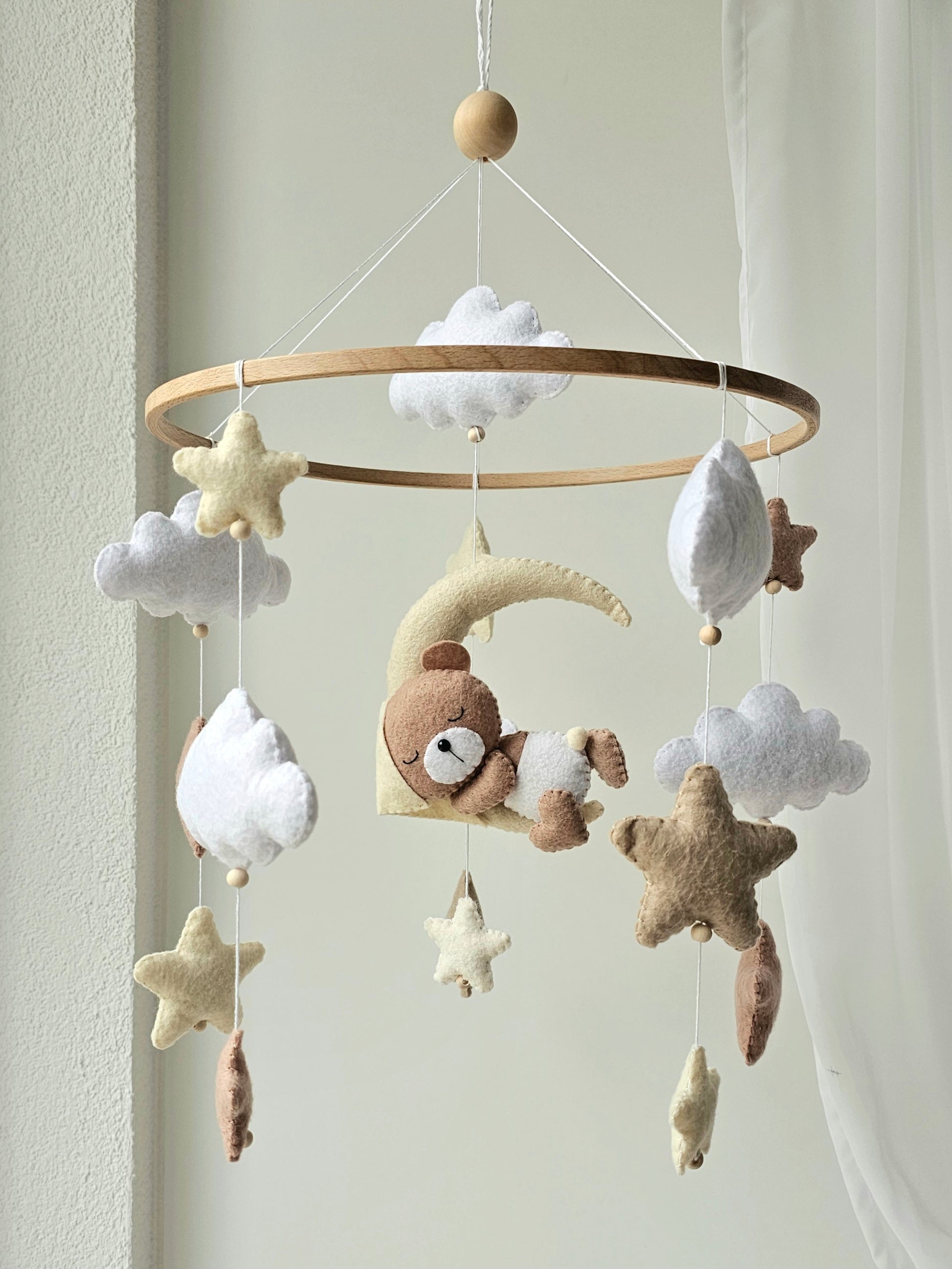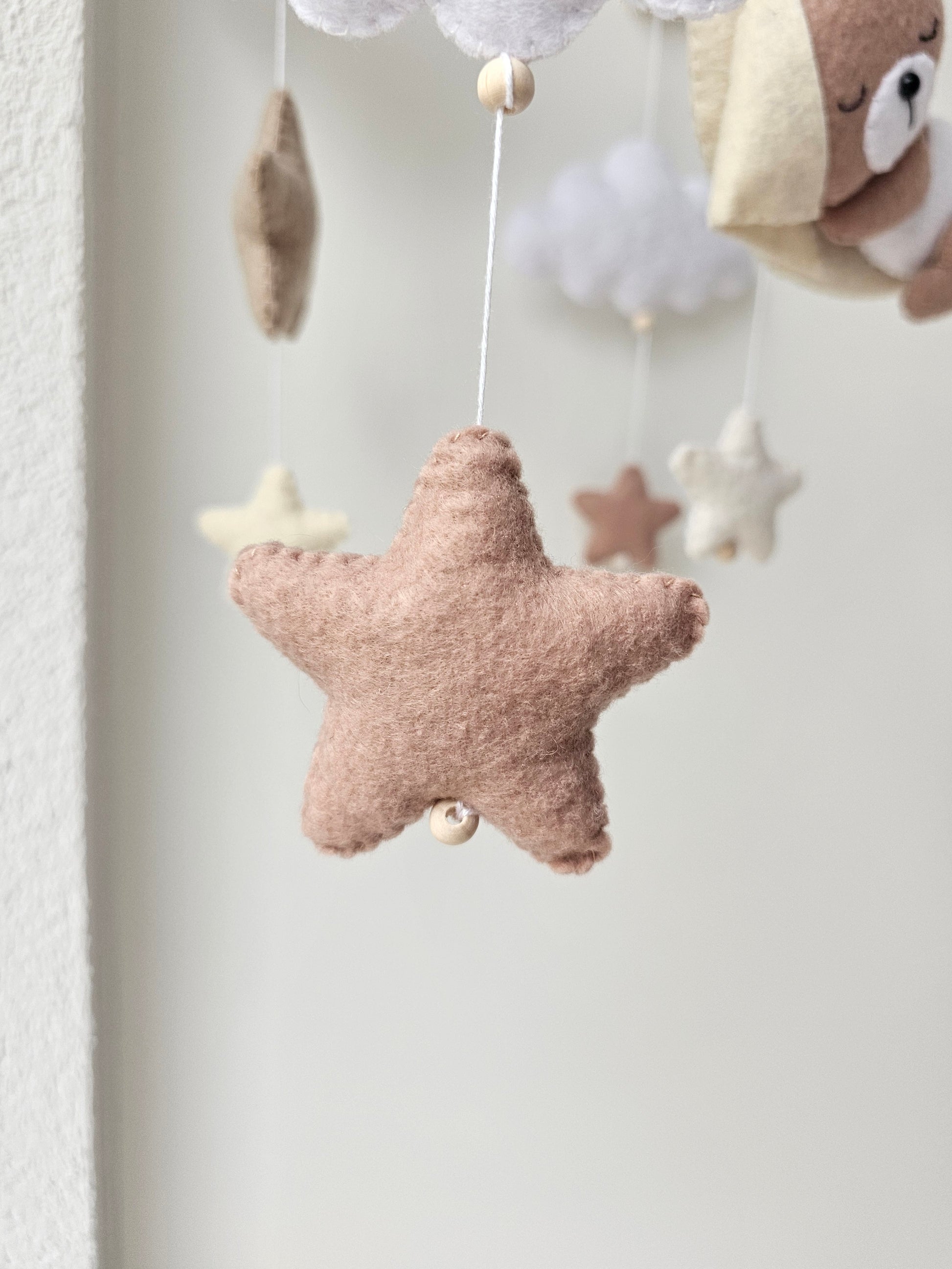 Das Mobile wird liebevoll von Hand hergestellt und ist ein Unikat. Dank dem Mobile wird es deinem Liebling nie langweilig und es ist das perfekte Accessoire für dein Babyzimmer. Es kann über dem Stubenwagen, der Wickelkommode oder dem Kinderbett angebracht werden.