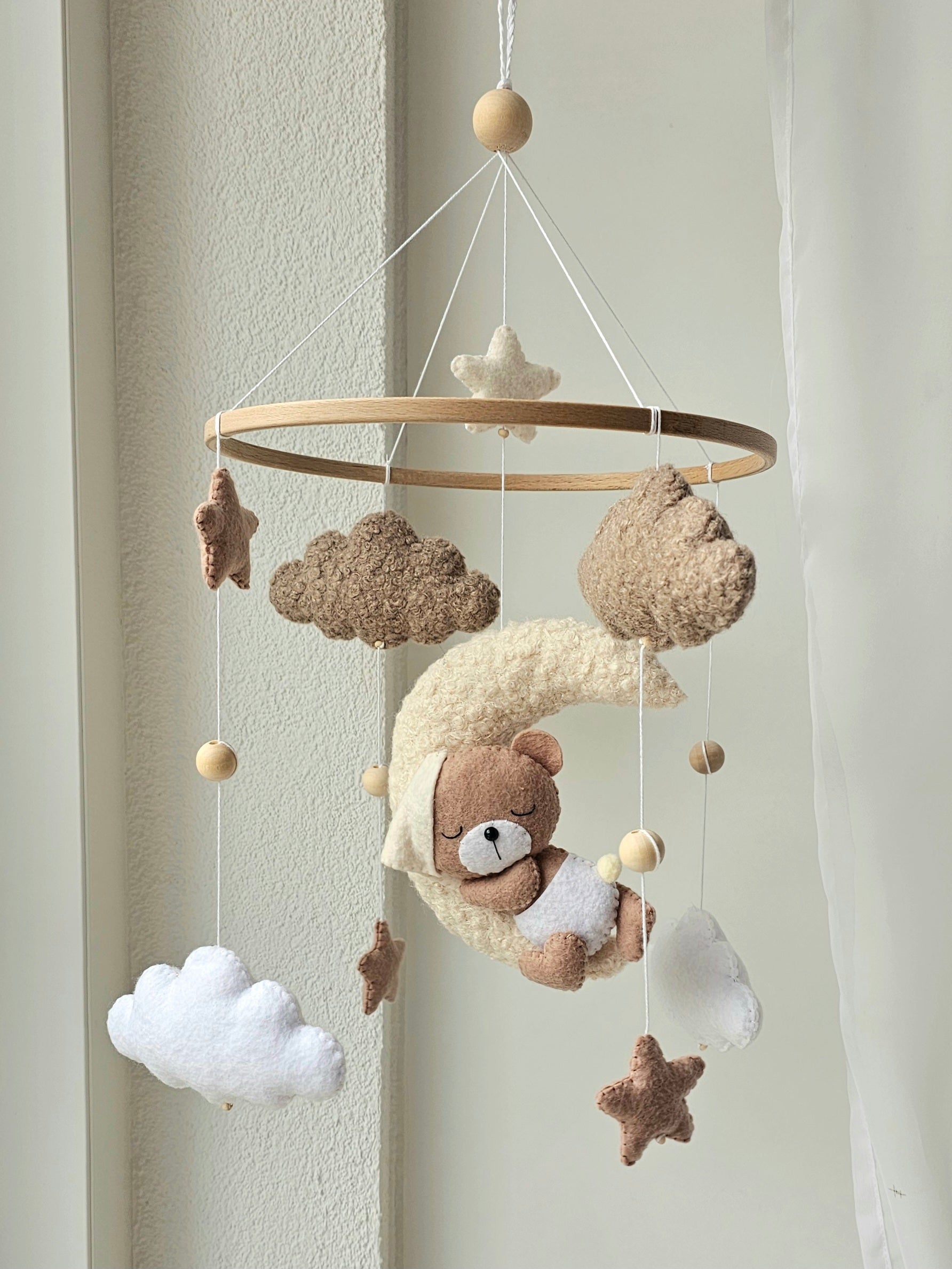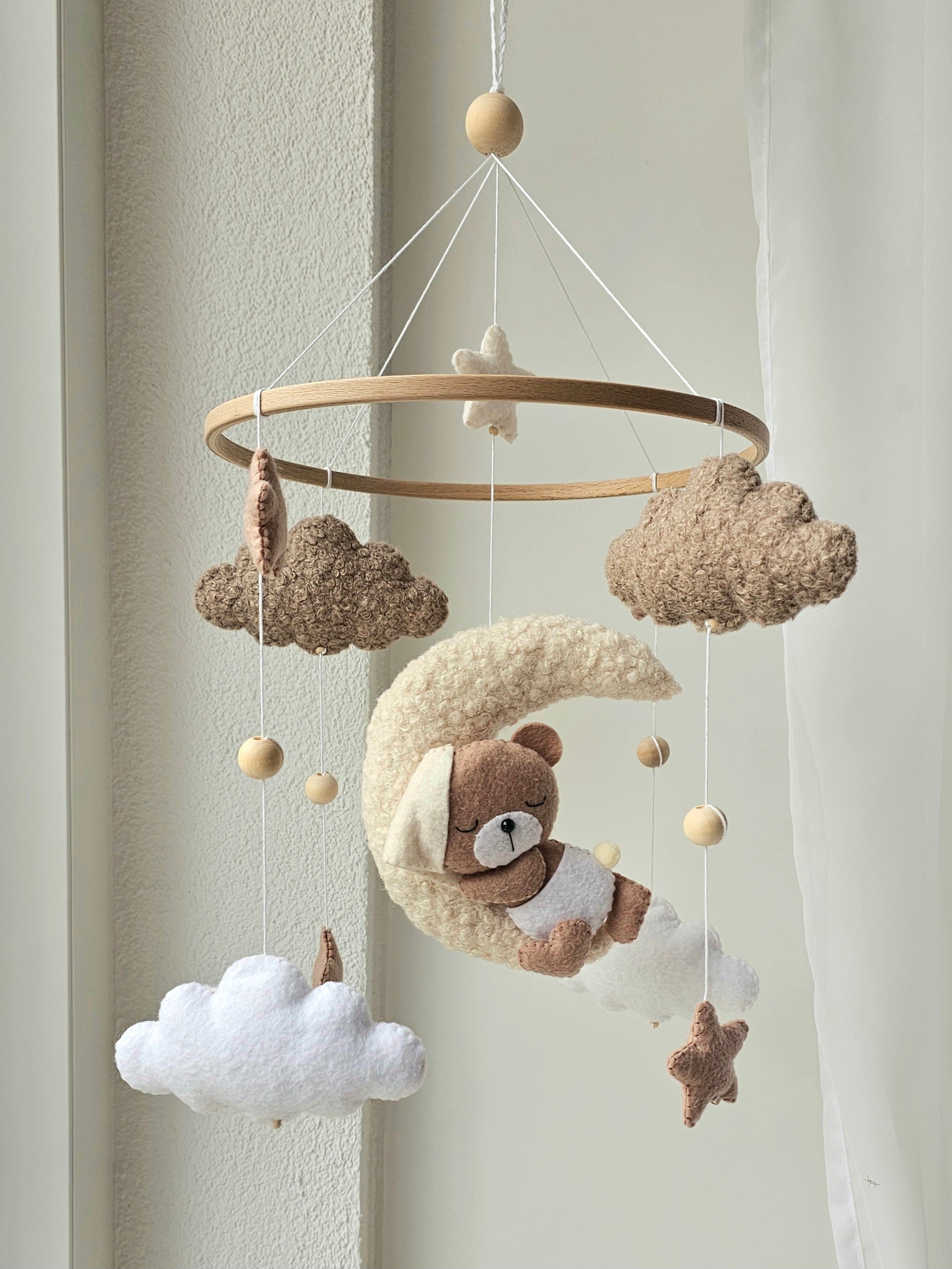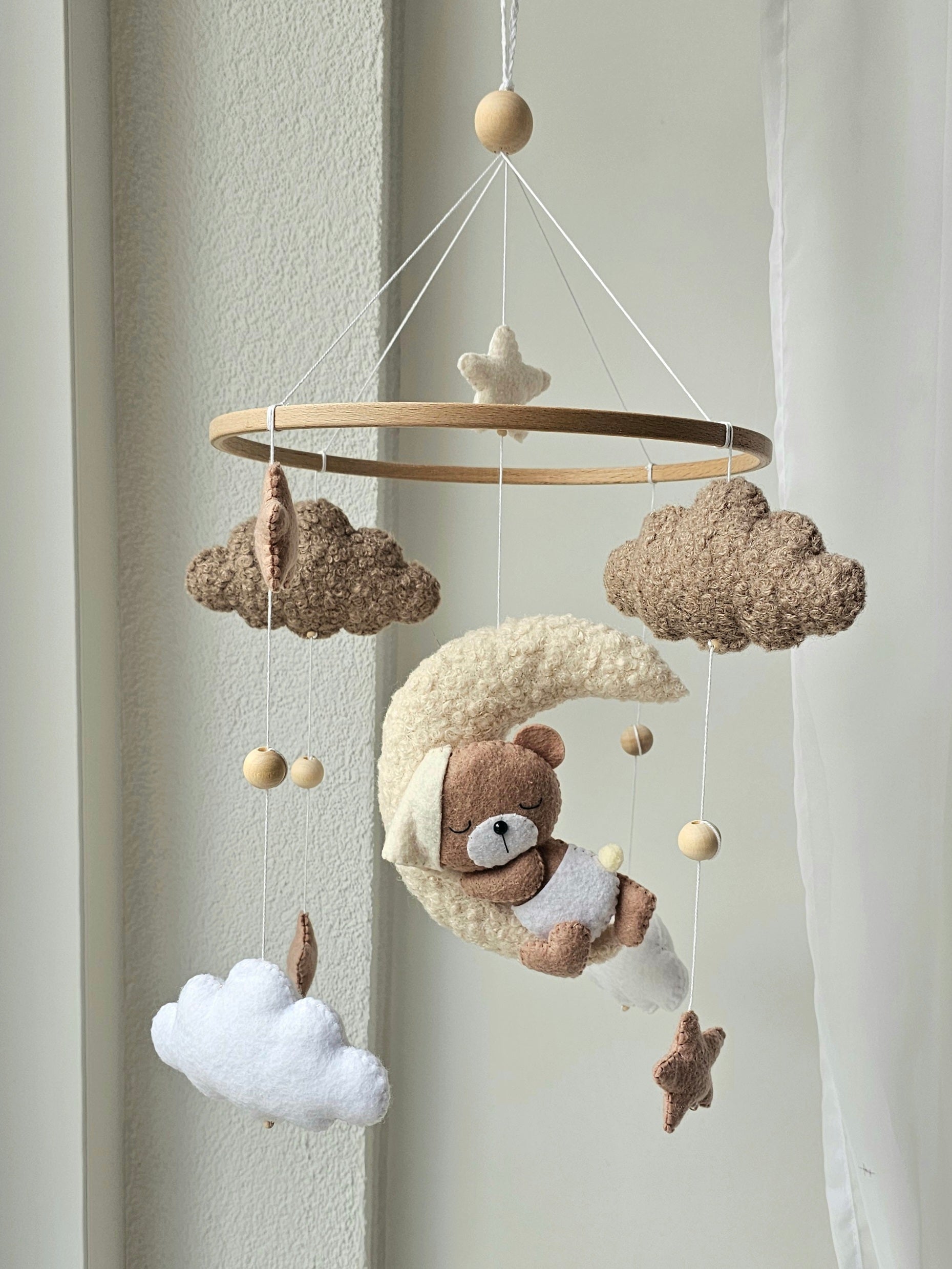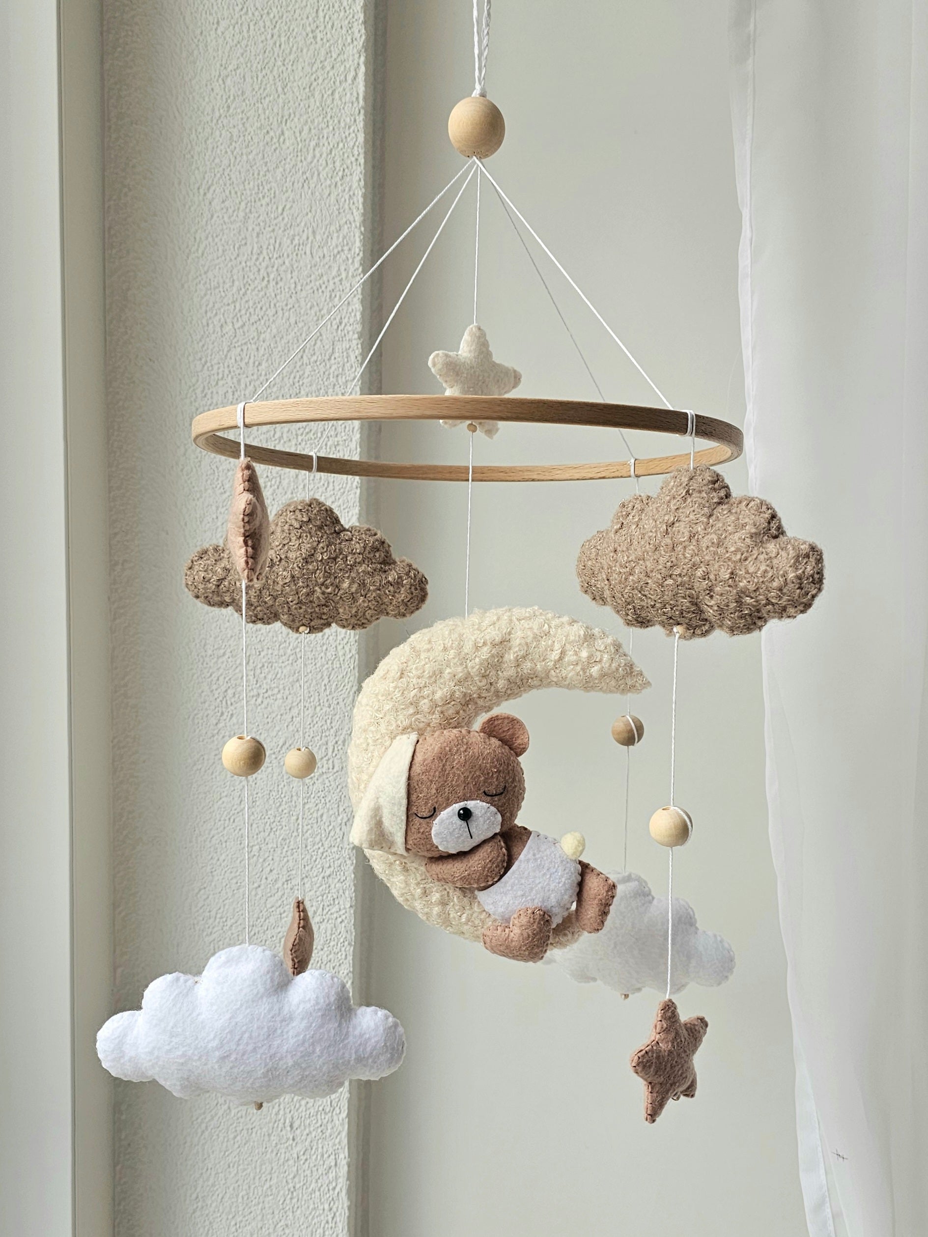 Das Mobile wird liebevoll von Hand hergestellt und ist ein Unikat. Dank dem Mobile wird es deinem Liebling nie langweilig und es ist das perfekte Accessoire für dein Babyzimmer. Es kann über dem Stubenwagen, der Wickelkommode oder dem Kinderbett angebracht werden.